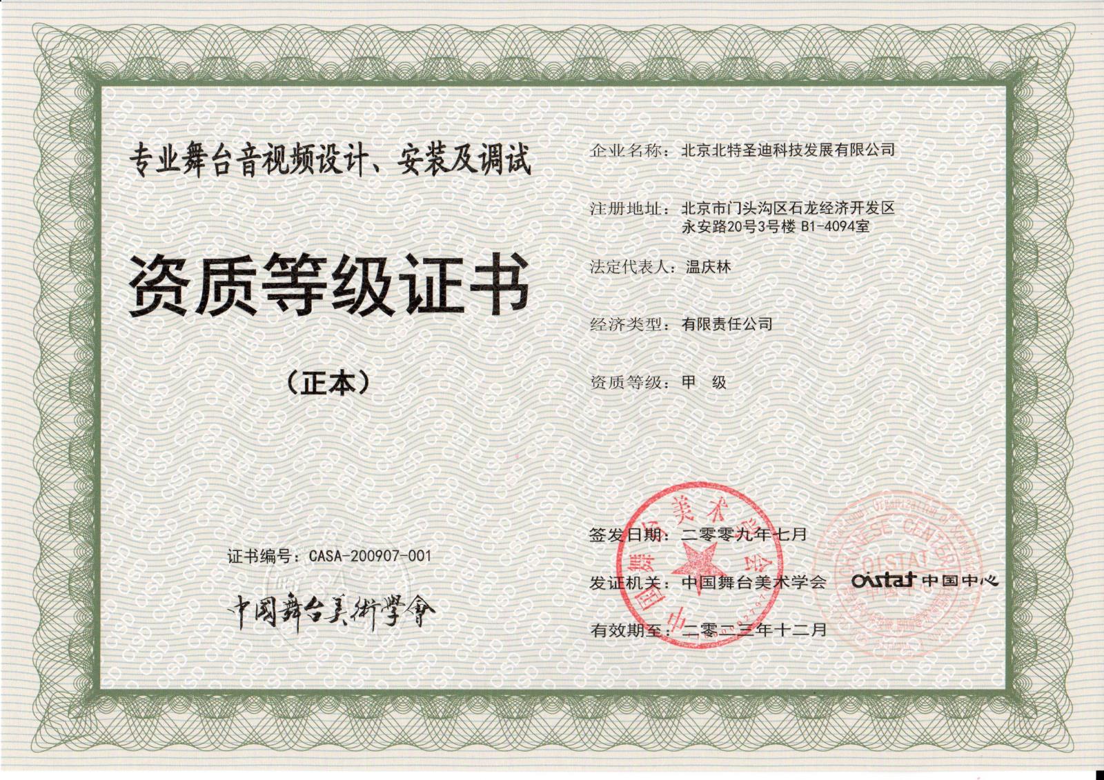 演藝設(shè)備工程企業(yè)音視頻系統(tǒng)集成工程 綜合技術(shù)能力等級壹級資質(zhì)
