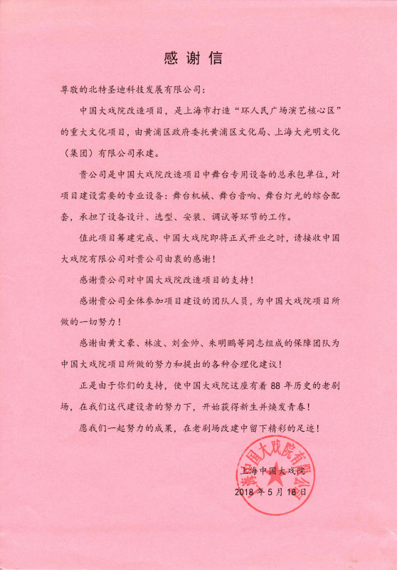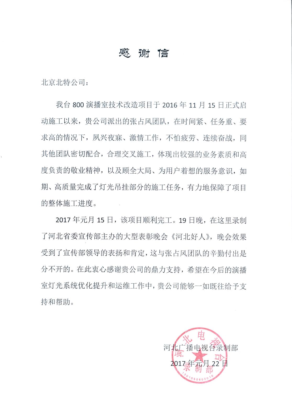 河北廣播電視臺800演播室技術(shù)改造項目感謝信