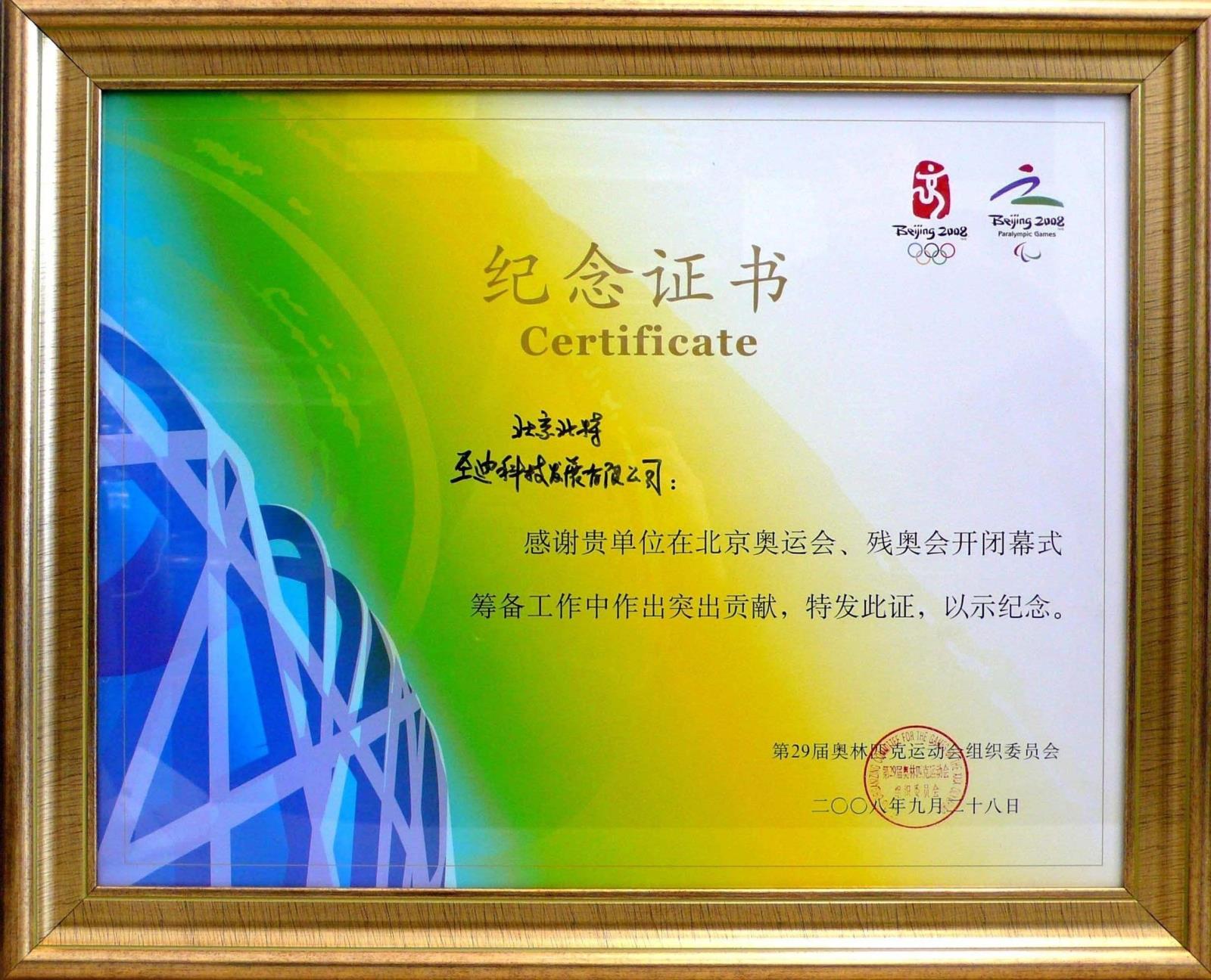 2008北京奧運會、殘奧會先進個人榮譽證書-于雪松