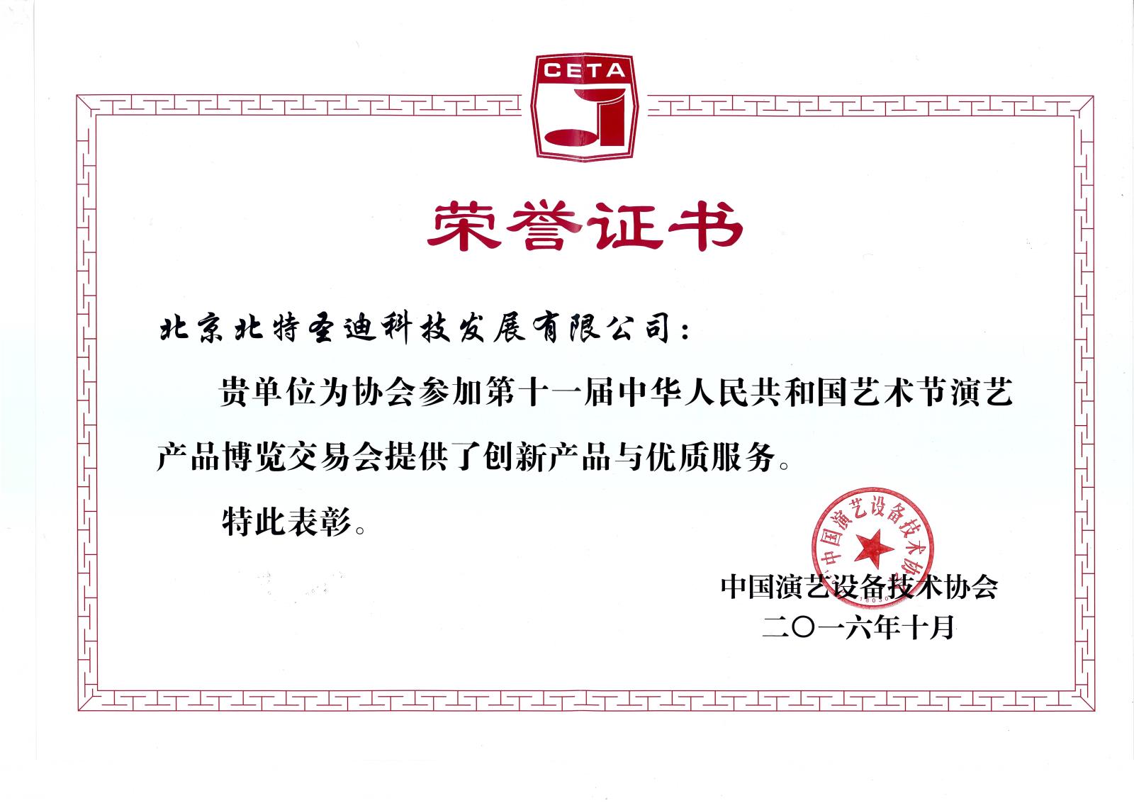 2016第十一屆中華人民共和國藝術(shù)節(jié)榮譽證書