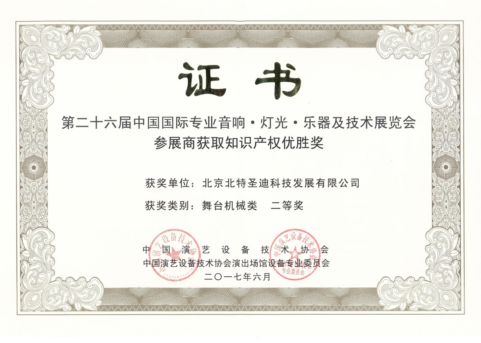 2017第二十六屆PALM展知識產(chǎn)權(quán)優(yōu)勝獎-舞臺機械二等獎