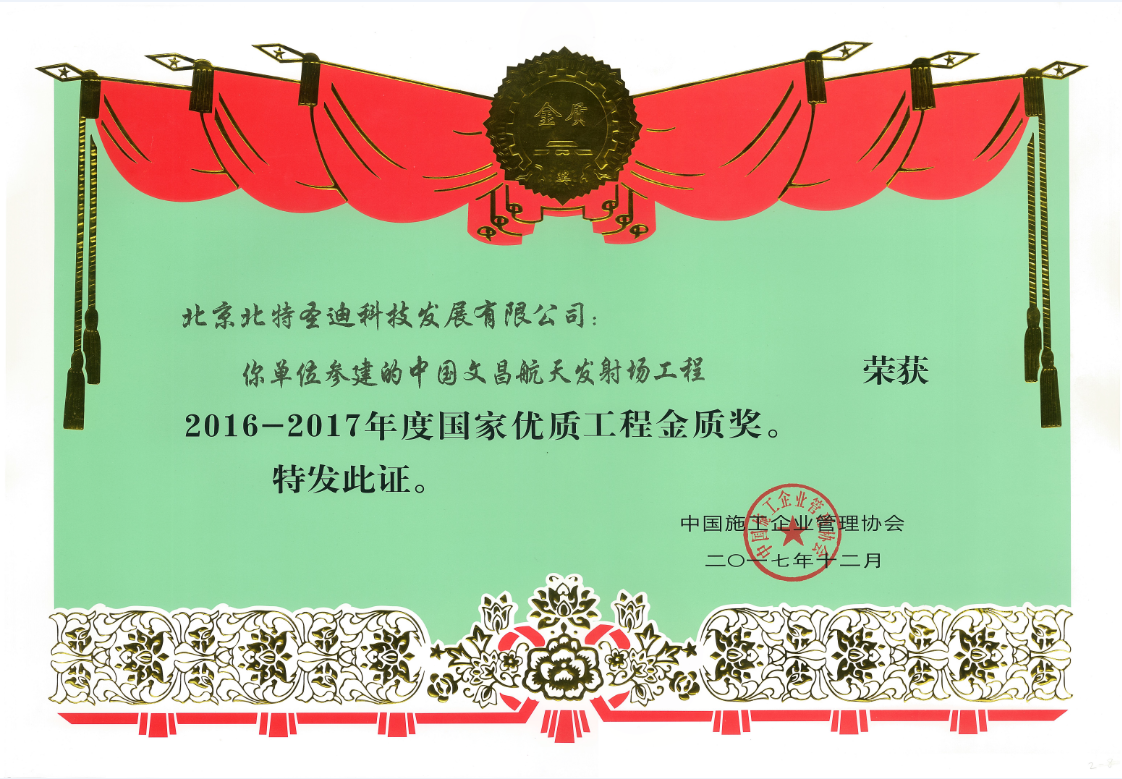 2016-2017年度國家優(yōu)質(zhì)工程金質(zhì)獎
