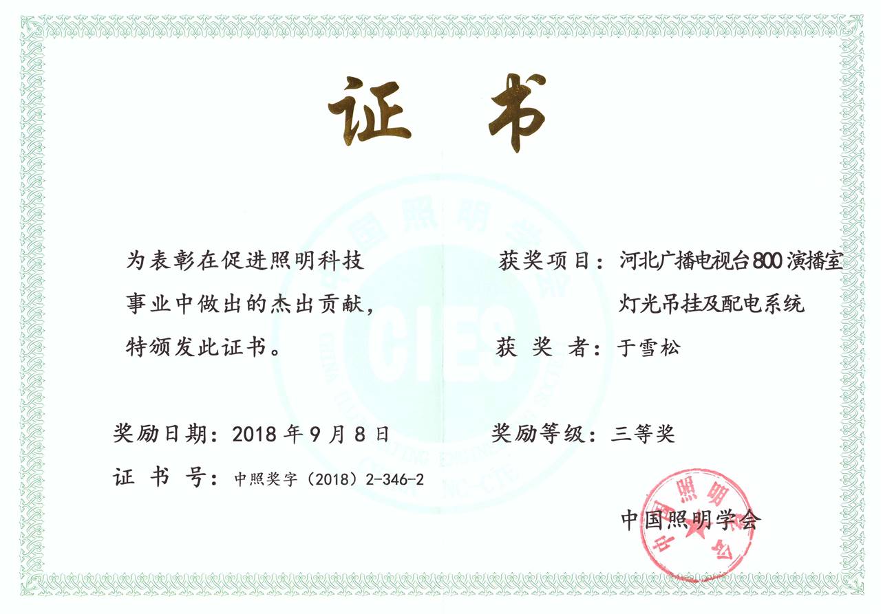 河北廣播電視臺800演播室燈光吊掛及配電系統(tǒng)個人三等獎-于雪松