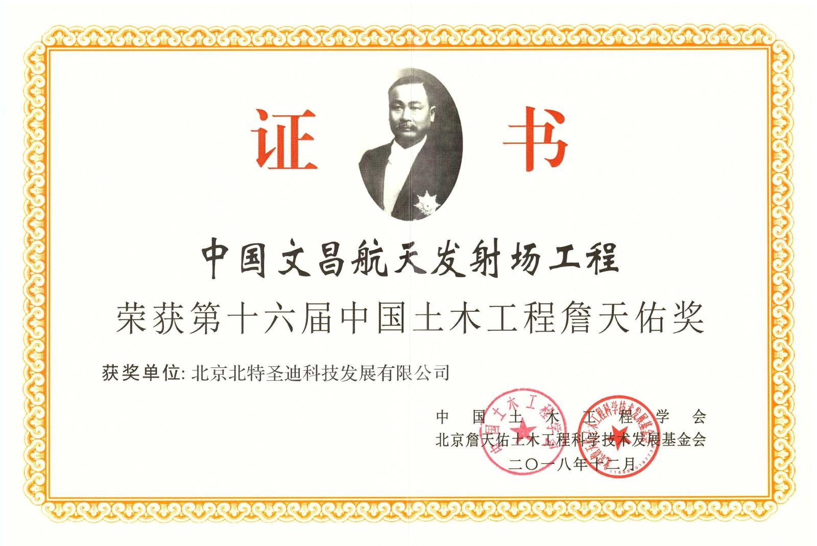 2016海南文昌航天發(fā)射場建設(shè)重大貢獻獎