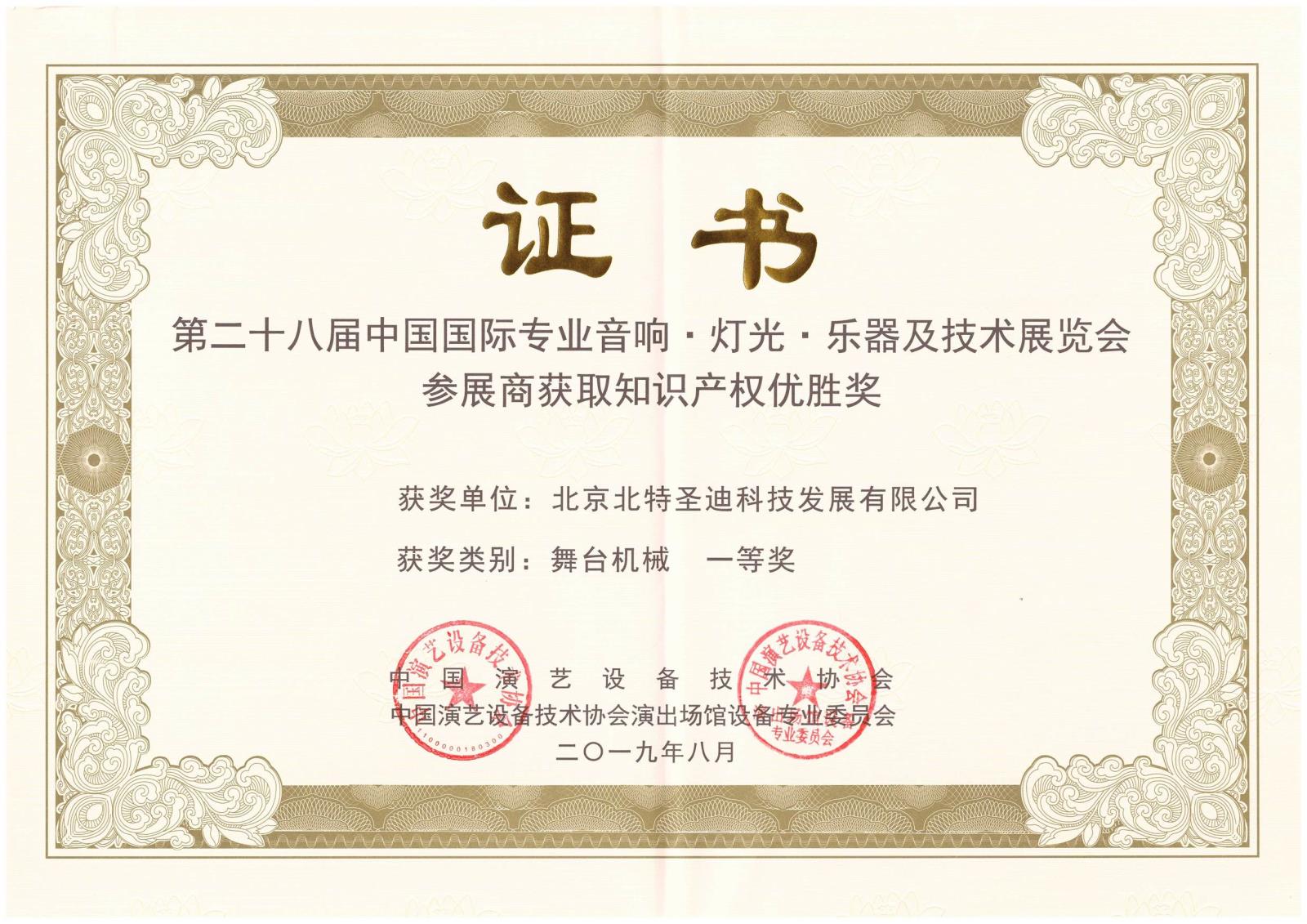 第二十八屆PALM展知識產(chǎn)權(quán)優(yōu)勝獎-舞臺機械一等獎