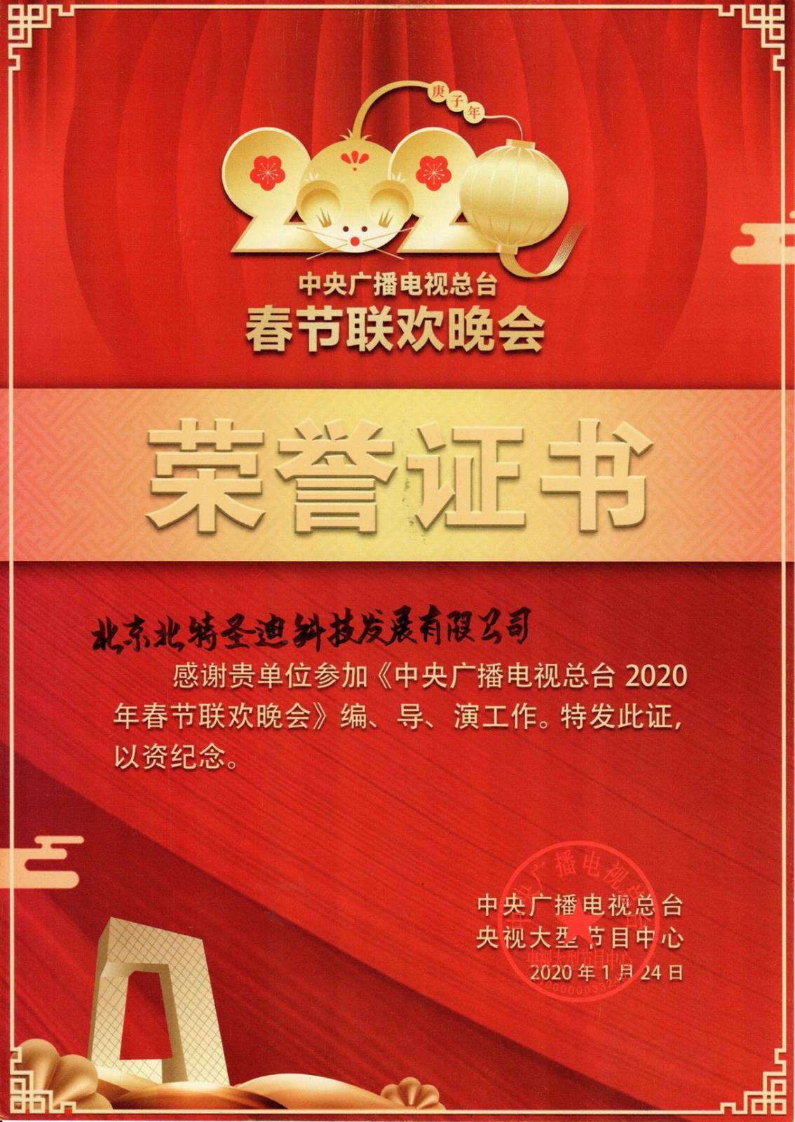 2020春節(jié)聯(lián)歡晚會榮譽證書