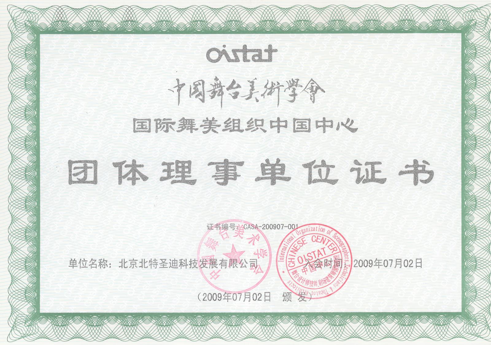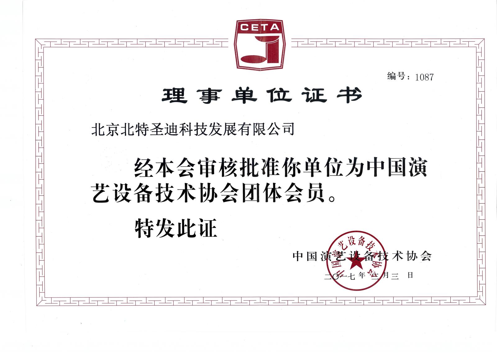 中國演藝設(shè)備技術(shù)協(xié)會理事單位證書