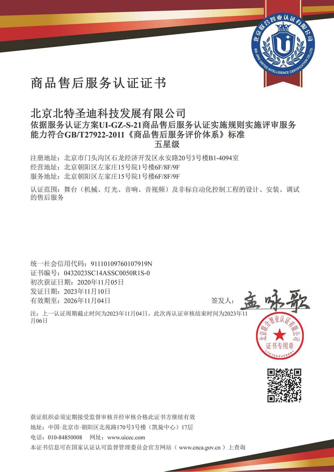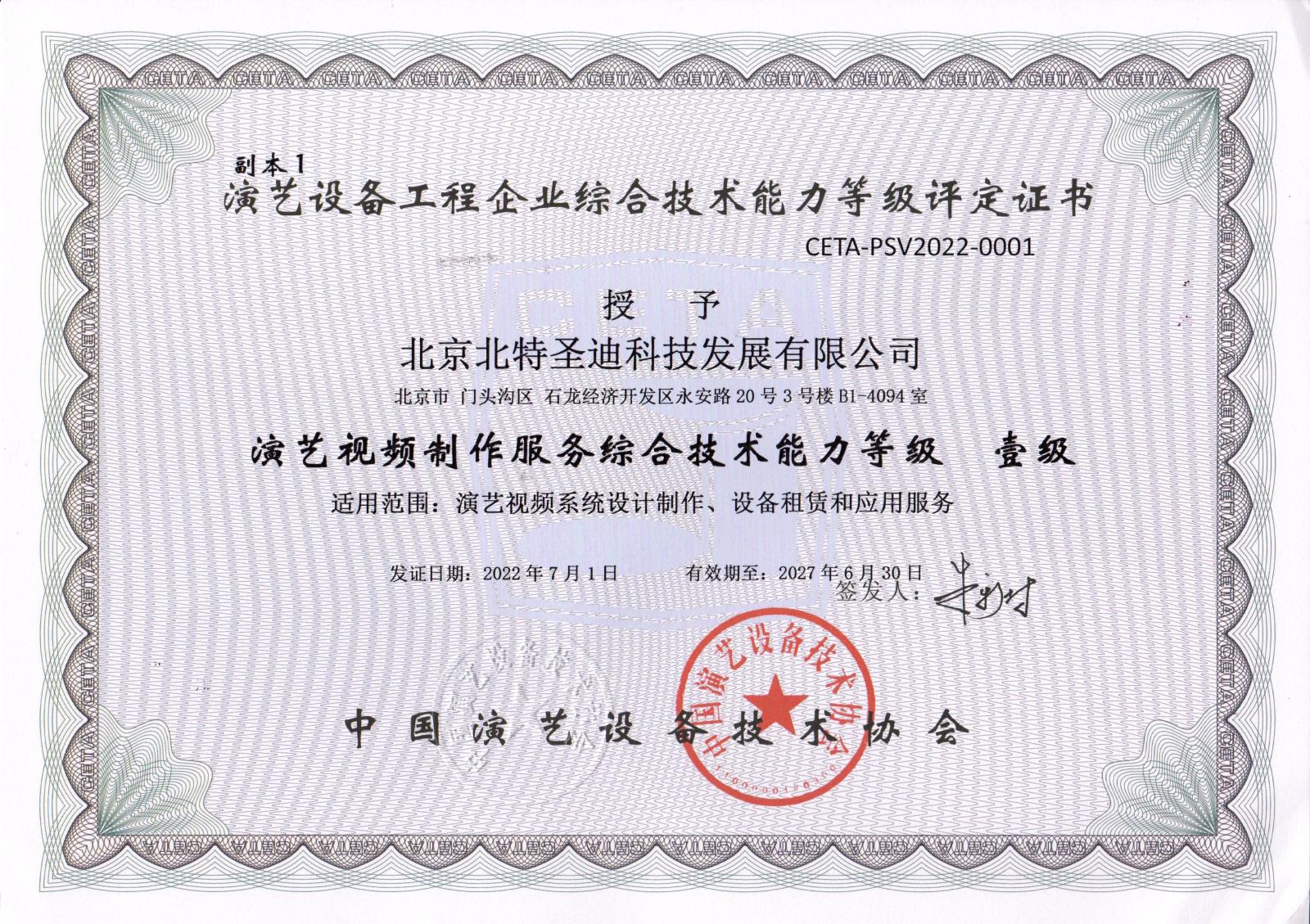 演藝設(shè)備工程企業(yè)演藝設(shè)備總綜合制作服務(wù)綜合技術(shù)能力等級壹級