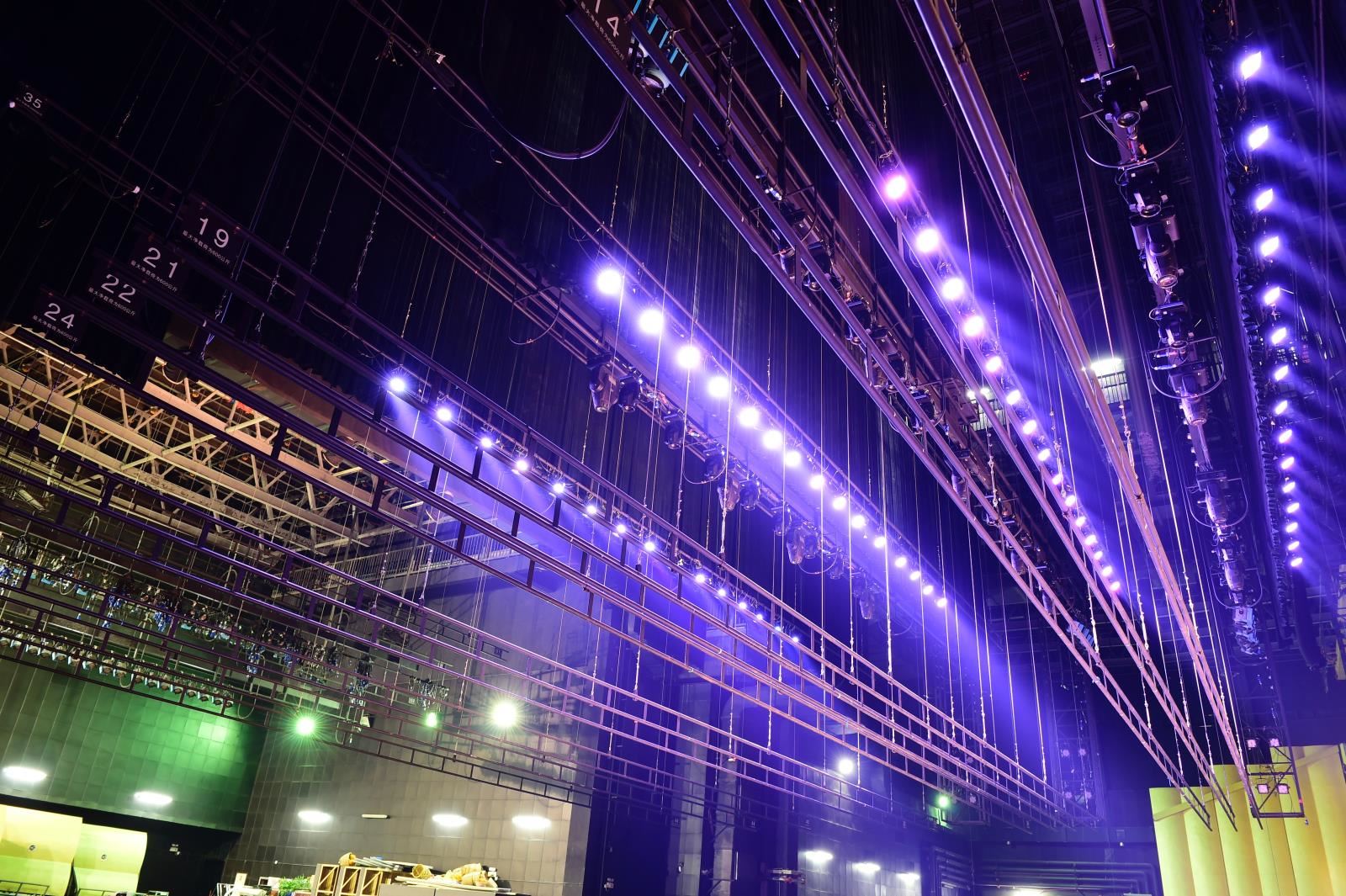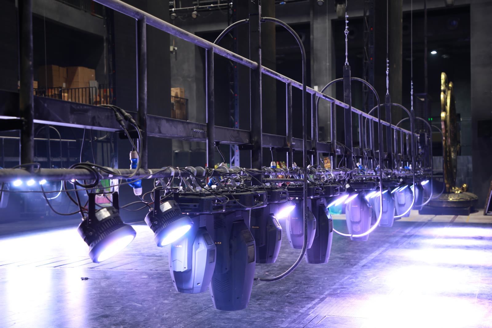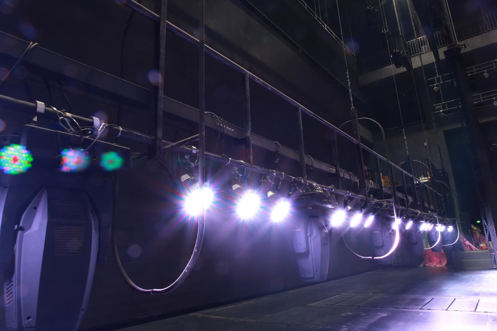 燈光吊桿位于主舞臺上方,平行于舞臺橫軸。少數(shù)劇院有側燈光吊桿,垂直于舞臺橫軸。