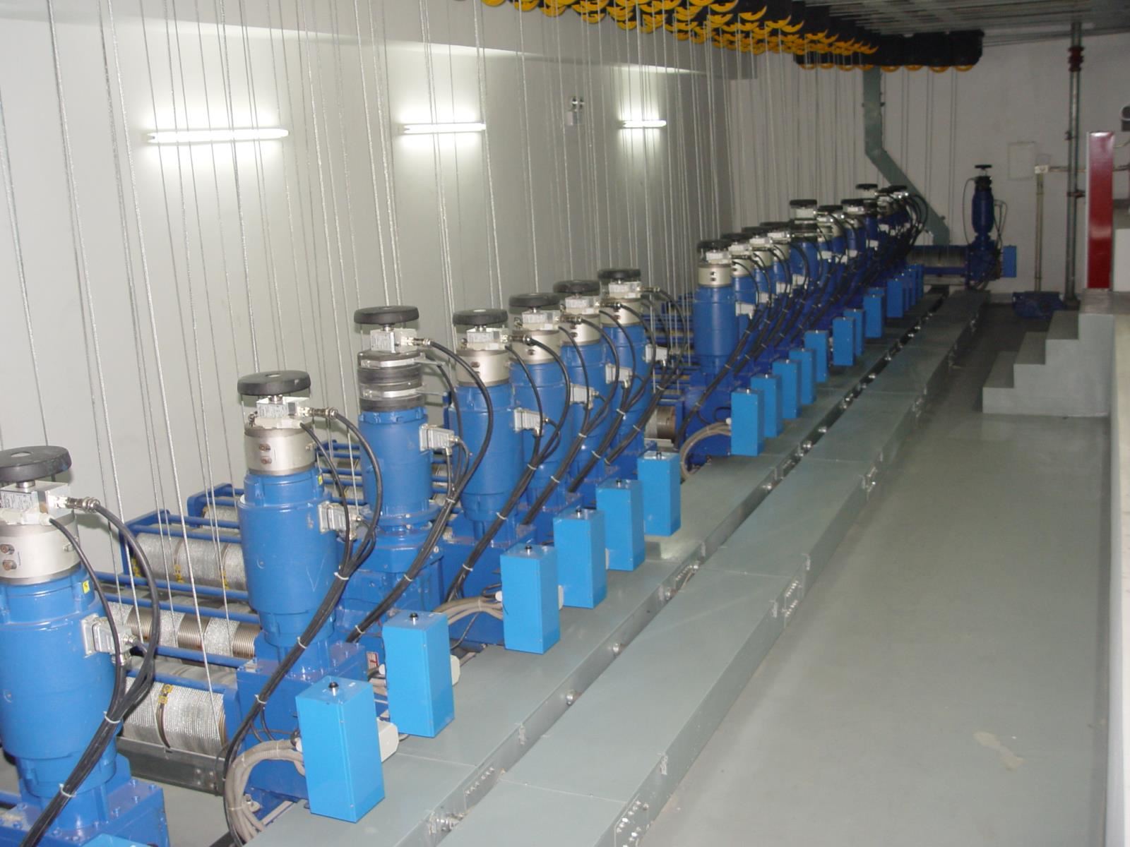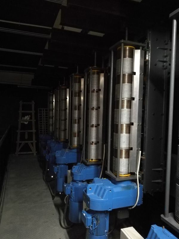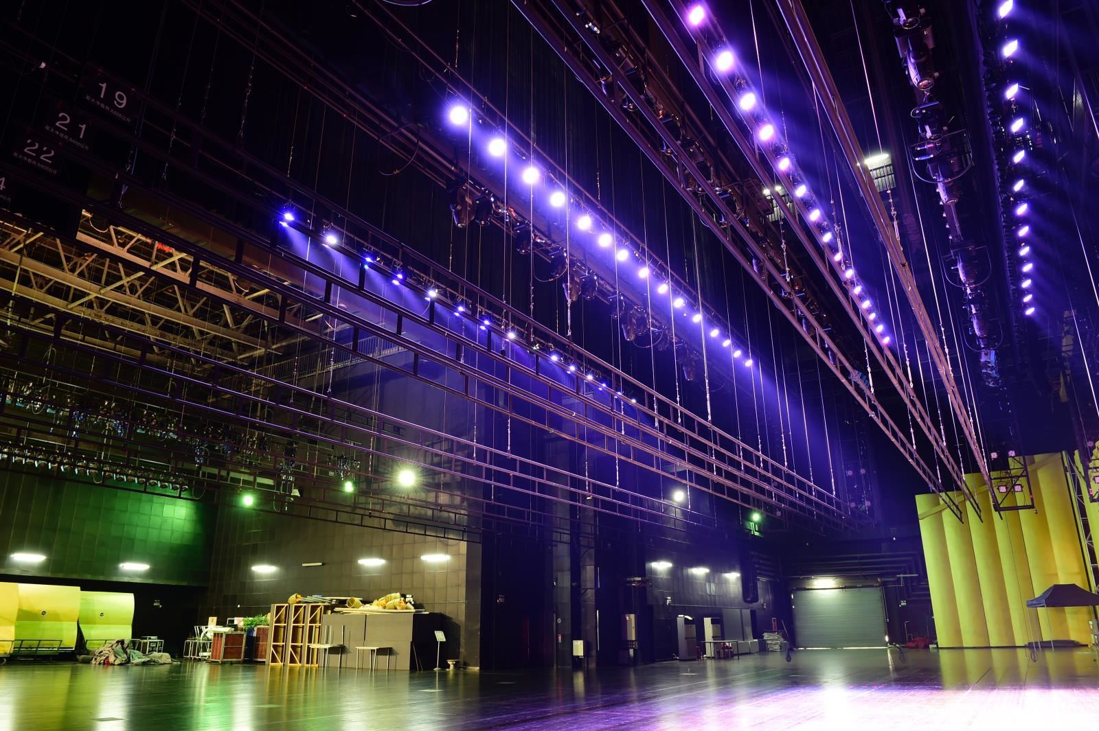 設(shè)置于主舞臺(tái)或其他舞臺(tái)區(qū)域上部、可調(diào)速的電動(dòng)吊桿,用于提升布景、各種幕布等,參加演出活動(dòng);