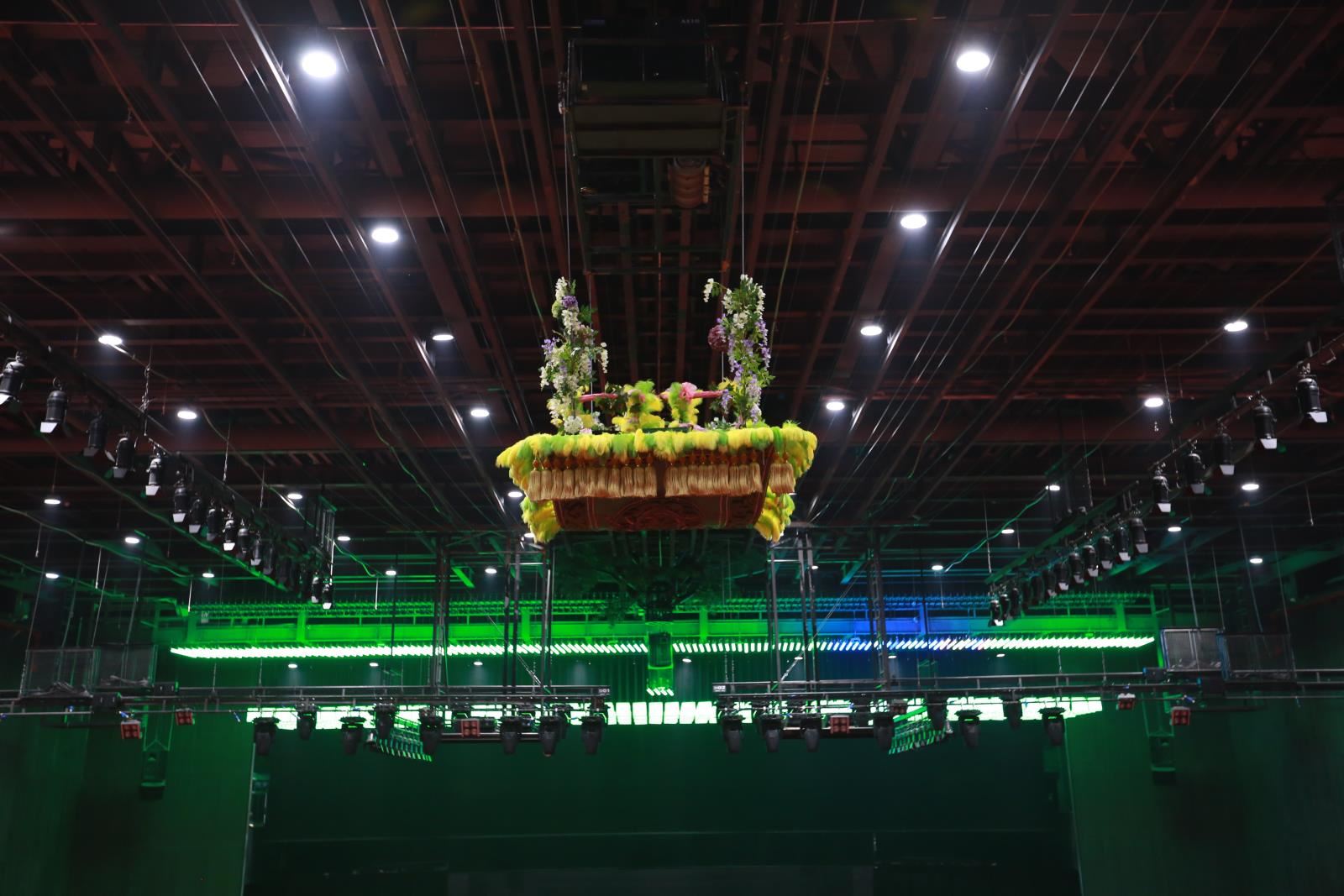飛行器所吊掛道具或演員升降均采用電動鋼絲繩卷揚方式;飛行器需特別注意安全設(shè)計,有人飛行器在演員位置均設(shè)備控制點。