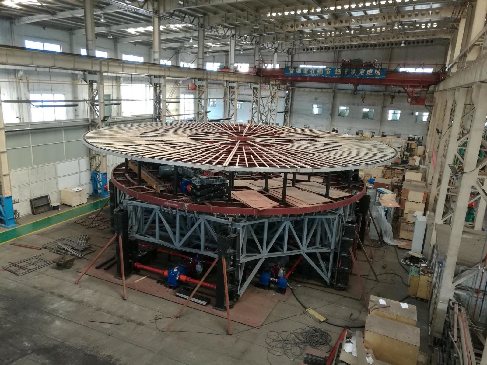 舞臺(tái)升降機(jī)是節(jié)目(秀)的一個(gè)重要布景元素,為單層結(jié)構(gòu),行程: -5.60m至 -3.60m,總行程為2.0m。舞臺(tái)升降機(jī)的頂面將沿著單一軸線從水平位置傾斜10度。整個(gè)頂面可以連續(xù)旋轉(zhuǎn)。升降機(jī)可提供持續(xù)的電源,升降機(jī)下方配備工作照明。所有配電線路在升降機(jī)框架內(nèi)的導(dǎo)管中運(yùn)行。升降機(jī)的頂面為防漏不銹鋼底盤(pán)。底盤(pán)向中心填充點(diǎn)傾斜 10mm/m;外加8mm的地板表面材料,結(jié)合至 25mm PVC 板材。底盤(pán)外緣是一個(gè)連續(xù)的環(huán)形溢流排水口。圍繞舞臺(tái)升降機(jī)是一個(gè)環(huán)形無(wú)邊水效果。在周邊平臺(tái)盤(pán)中有非吸水性地板材料,坡度也是 12mm/m,與舞臺(tái)升降機(jī)相配。