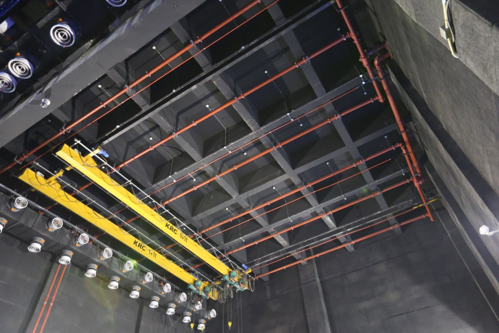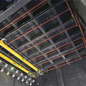 側(cè)臺(tái)裝景行車位于左右兩側(cè)側(cè)舞臺(tái)上空。行車用于大型或重型布景部件的裝配。