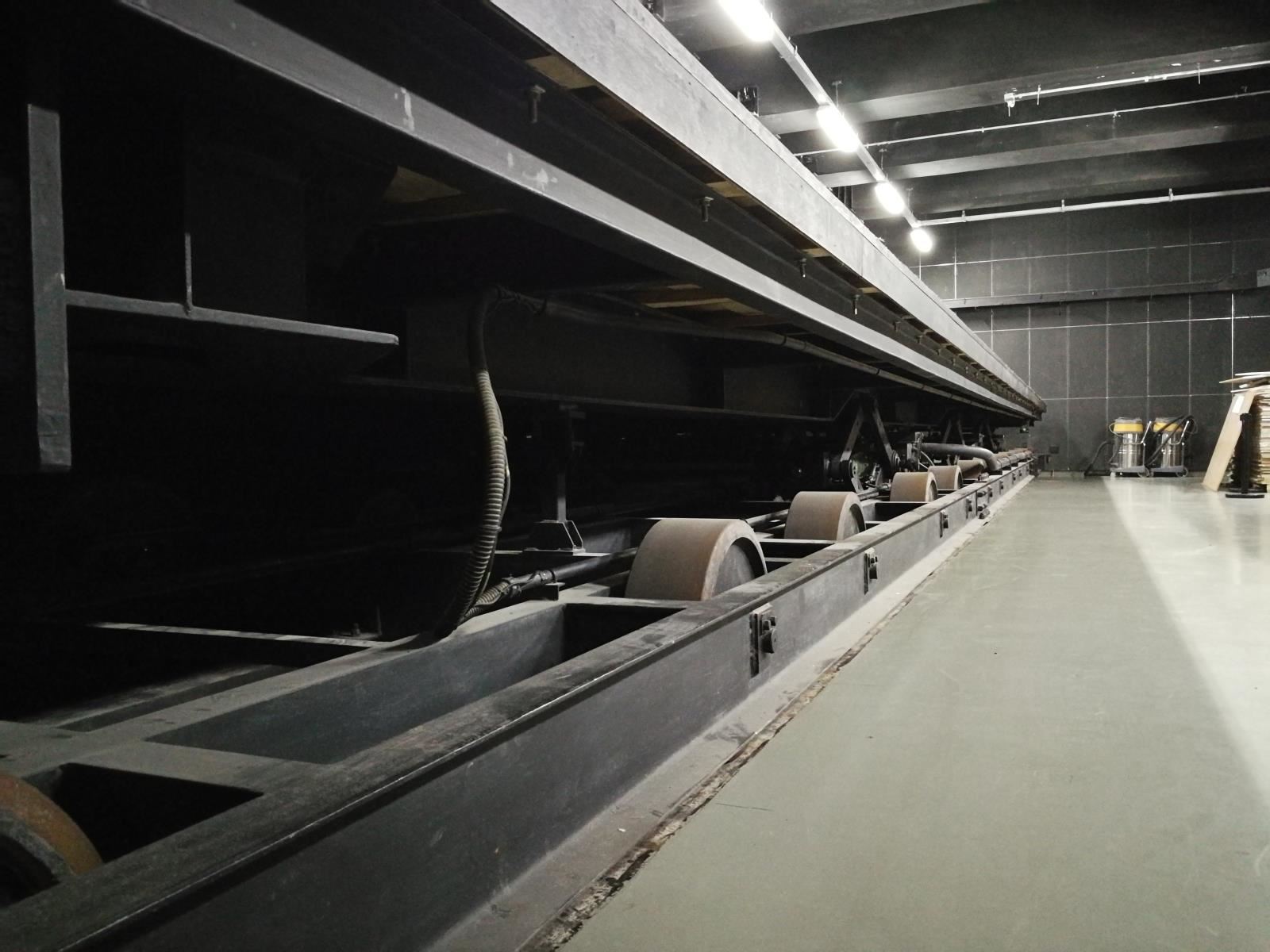 芭蕾舞車臺由安裝在鋼架的支撐輪和2個齒輪架上(齒條驅(qū)動時)的鋼結(jié)構(gòu)桁架組成。外部驅(qū)動裝置隱藏在芭蕾舞車臺臺體和主升降臺臺面之下。與臺車下部的齒條嚙合,向臺車傳送動力。由設(shè)置在第三、四塊主升降臺上的驅(qū)動裝置通過接力技術(shù)完成整個行程驅(qū)動?;蚩捎呻妱幽Σ凛喬峁┬凶邉恿?。